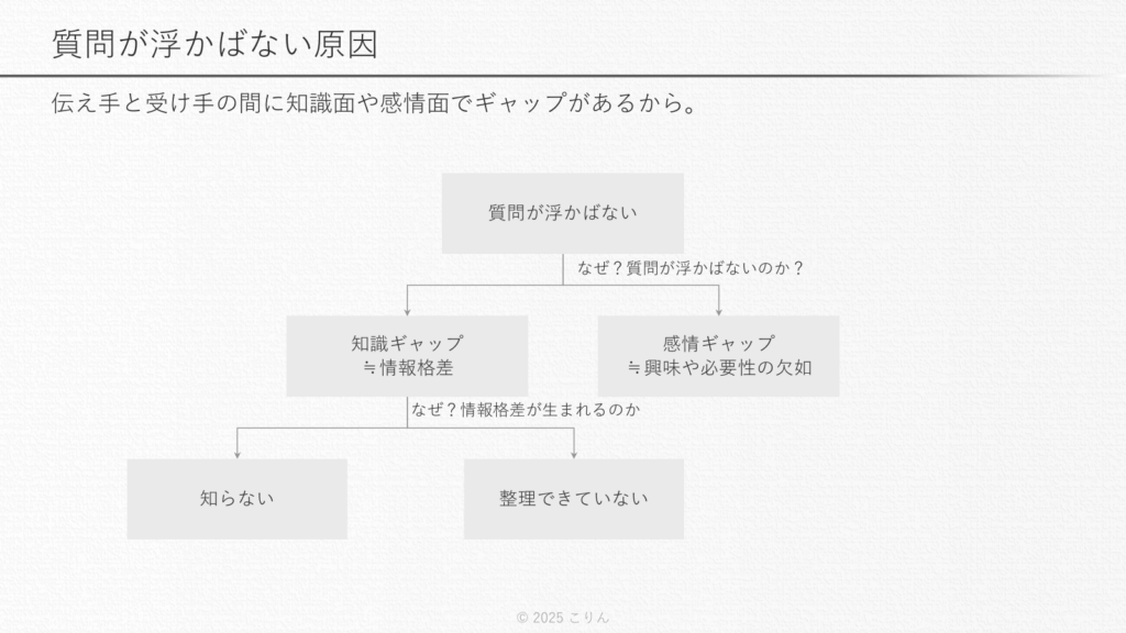 …なんですが、実際は「そもそも質問が浮かばない」ことが多いんです。